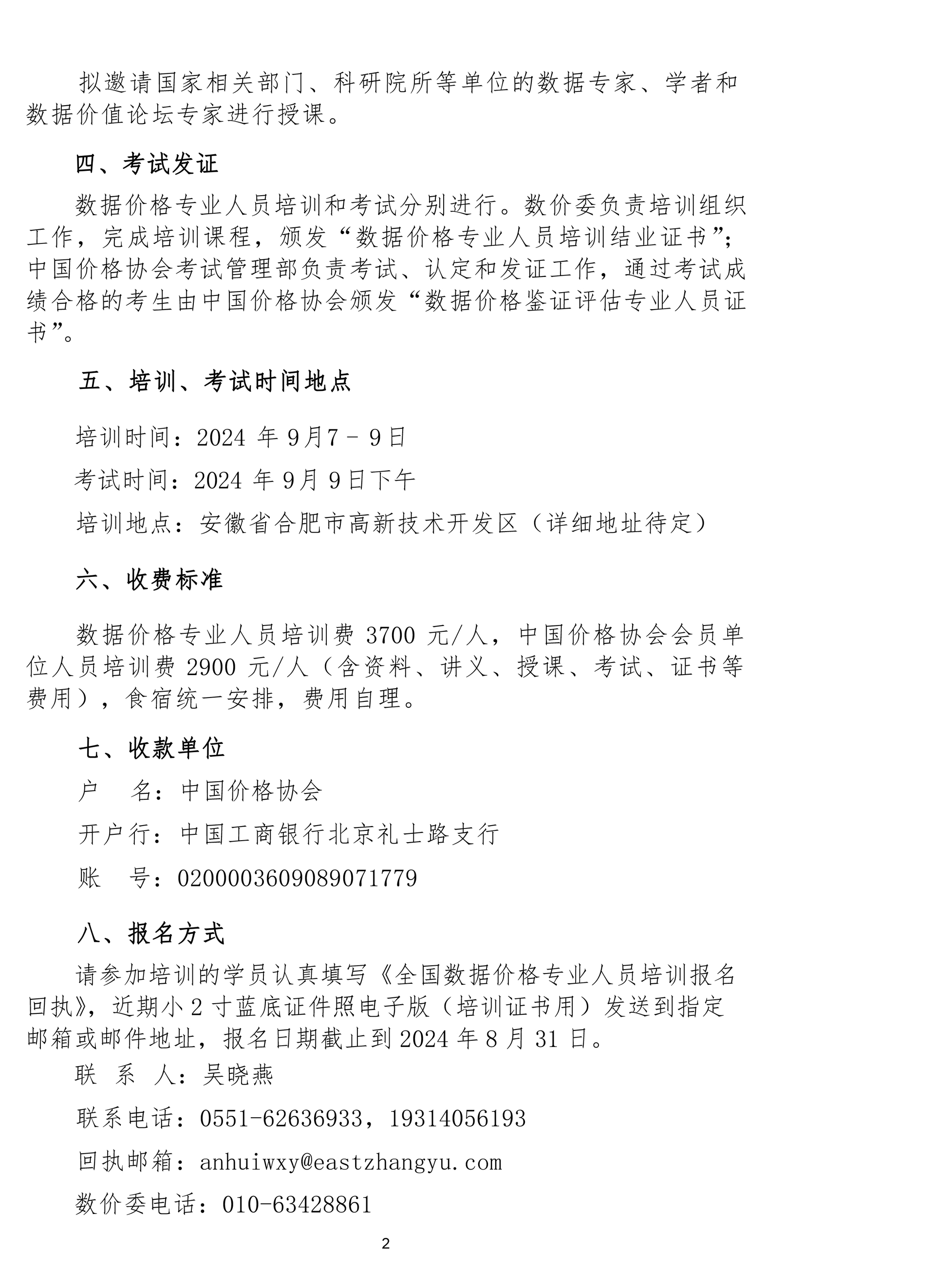 關于舉辦全國第三期數據價格專業人員培訓班的通知