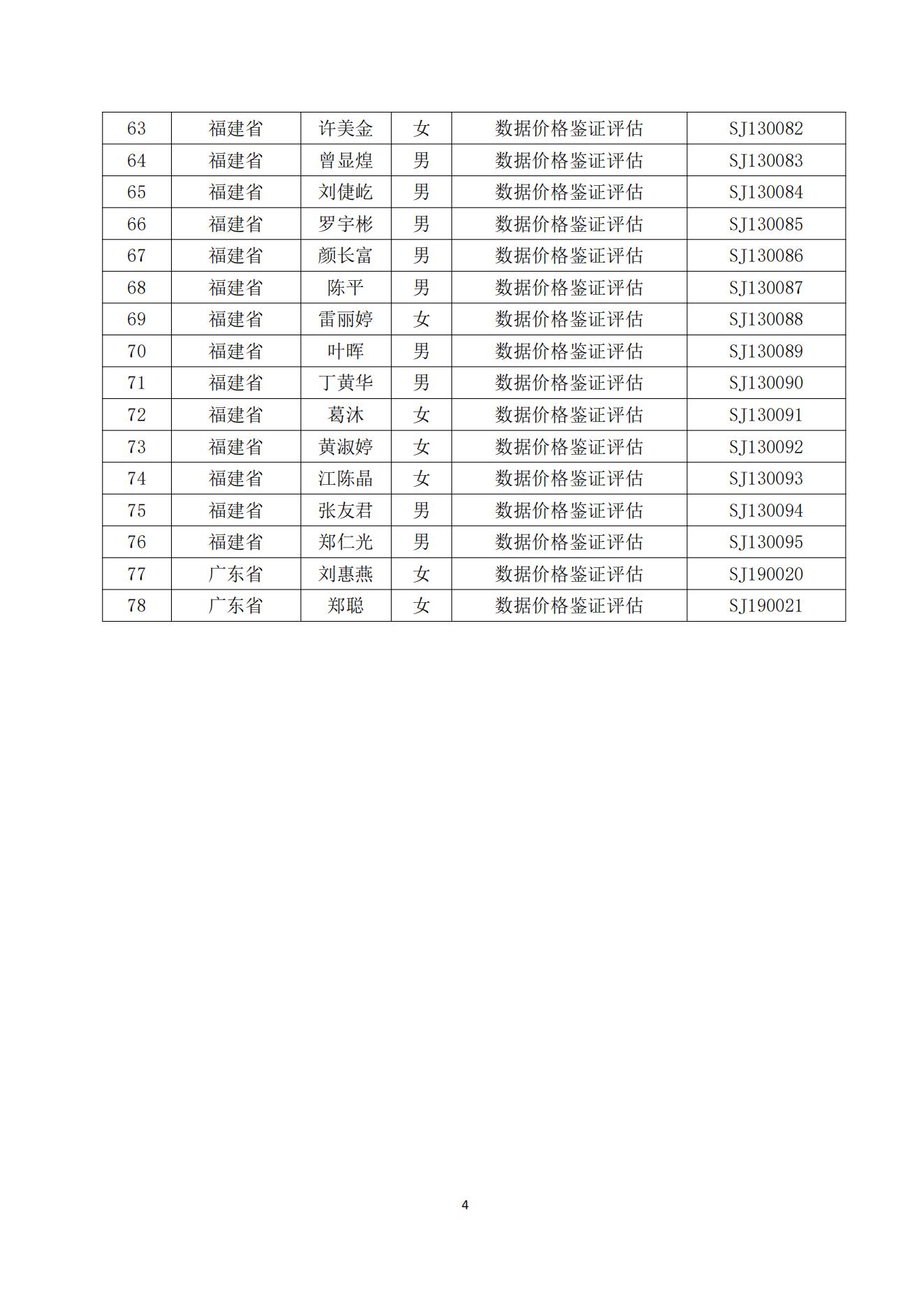 關于發布數據價格鑒證評估專業人員職業能力 水平考試(第四期)合格名單的公告